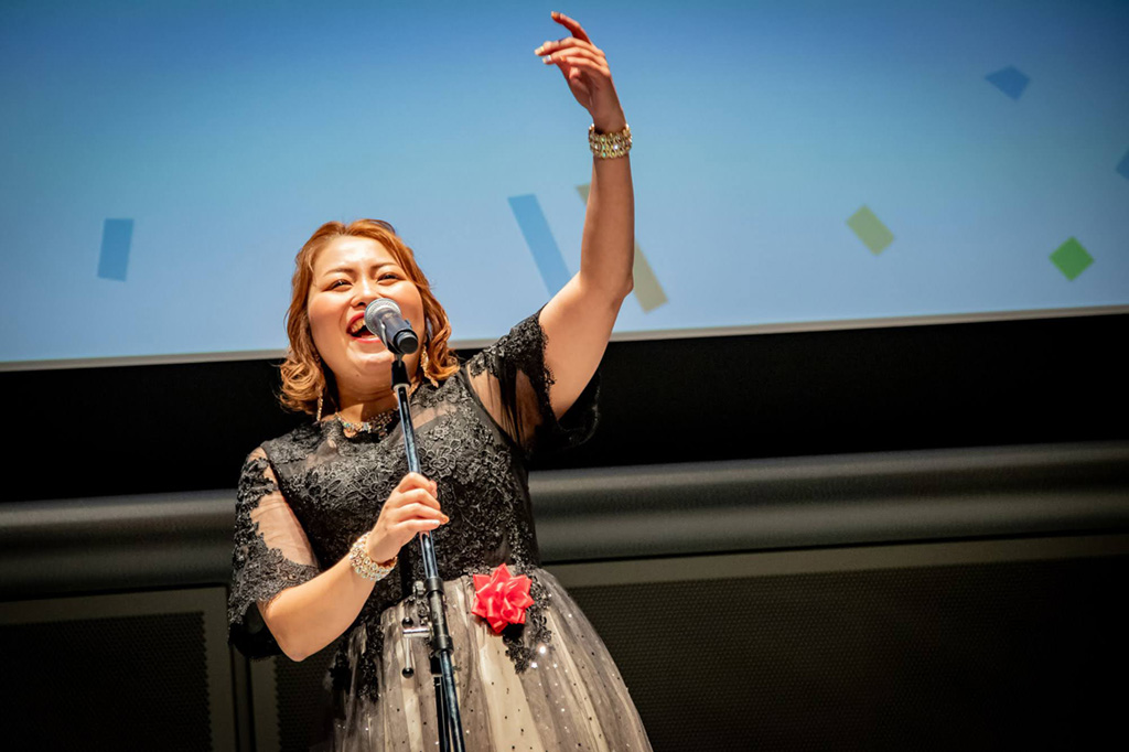 会場中から沸き起こった「おめでとう!」という歓声と割れんばかりの拍手の中、壇上へ進む彼女の姿は、まさに今大会の象徴といえる感動的なシーンでした。