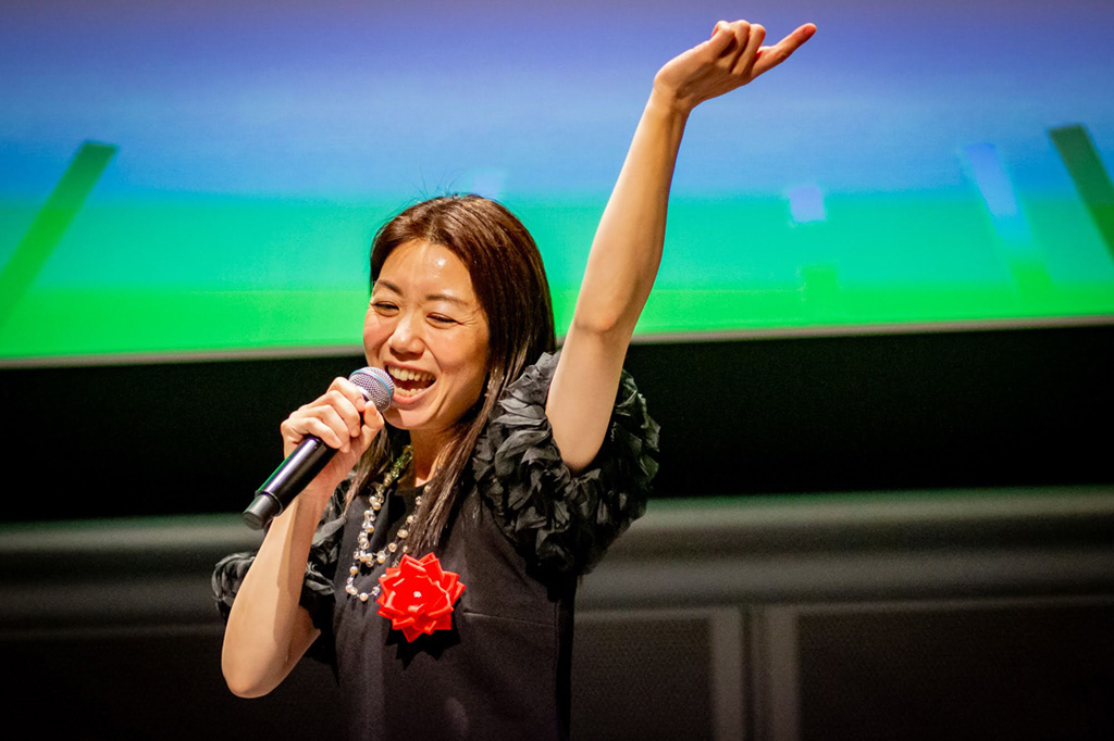 経営者の「伝える力」のプロとして声の力強さを見せつけた餘語知美さん。